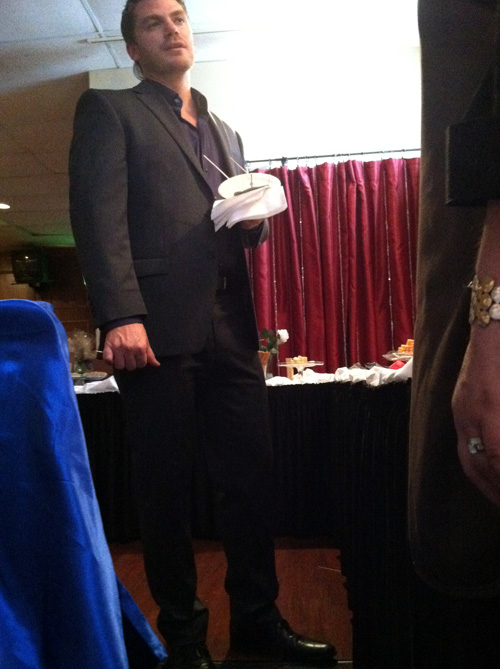 Here's actor Jeff Branson enjoying the chocolate fountain.