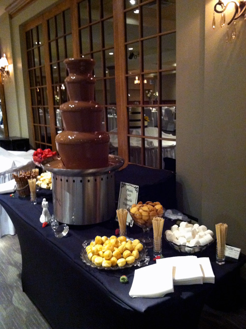 Be sure the chocolate fountain table is near a power outlet, and does not share power with speakers or audio equipment.