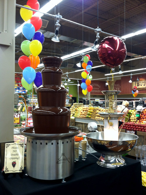 Here's our 34" chocolate fountain at a grand opening celebration of Fresh Thyme Farmer's Market.