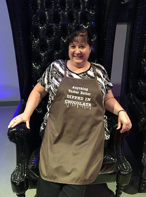 I'm your Lady Belgium chocolate fountain attendant - Jenny Blake. My motto is "Anything tastes better dipped in CHOCOLATE."